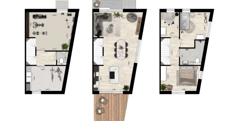 Verdeeld over drie lagen combineert de woning comfort en flexibiliteit. Het souterrain heeft een royale ruimte die uitstekend dienst kan doen als thuiskantoor, hobbyruimte of extra leefruimte; daarnaast is er een apart toilet, berging en ruimte voor witgoed. Op de begane grond vind je een lichte, open woonkamer met keuken, van waaruit je via grote deuren direct het terras bereikt. Aan de andere zijde een extra terrasje gelegen aan het park. Op de eerste verdieping vind je een grote master-slaapkamer, twee kleinere kamers en een badkamer.