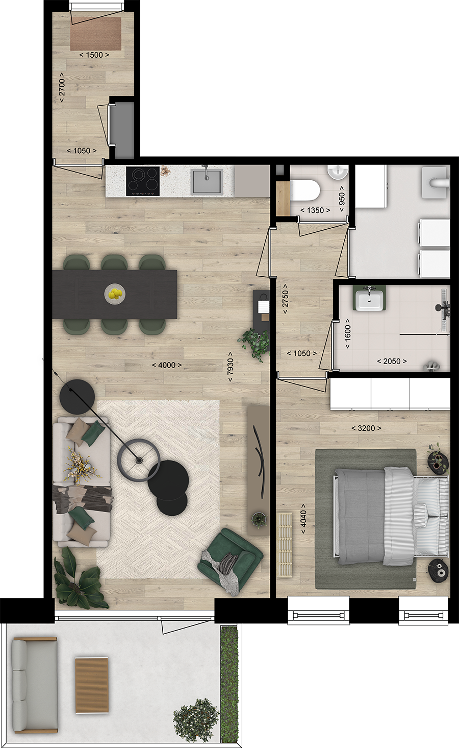 In dit compacte, maar slim ingedeelde appartement op de 4e verdieping woon je met de stad om de hoek en het park aan je voeten. Het appartement heeft één slaapkamer, een badkamer en een open woonkamer met leefkeuken van waaruit je direct het balkon betreedt. Het appartement wordt compleet opgeleverd: keuken en badkamer zijn inbegrepen in de v.o.n.-prijs. Daarnaast beschik je over een eigen berging en een privéparkeerplaats.